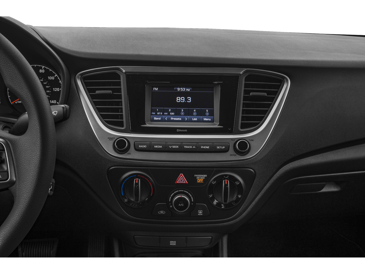 - Radio: Audio 4.0B AM/FM -inc: 4 speakers (2 front-door-mounted speakers, 2 rear speakers located lower panel), 5" color touchscreen, Apple Siri eyes-free interface, digital clock, smartphone/USB and MP3 auxiliary input jacks, steering-wheel-mounted audio controls and Bluetooth® hands-free phone system